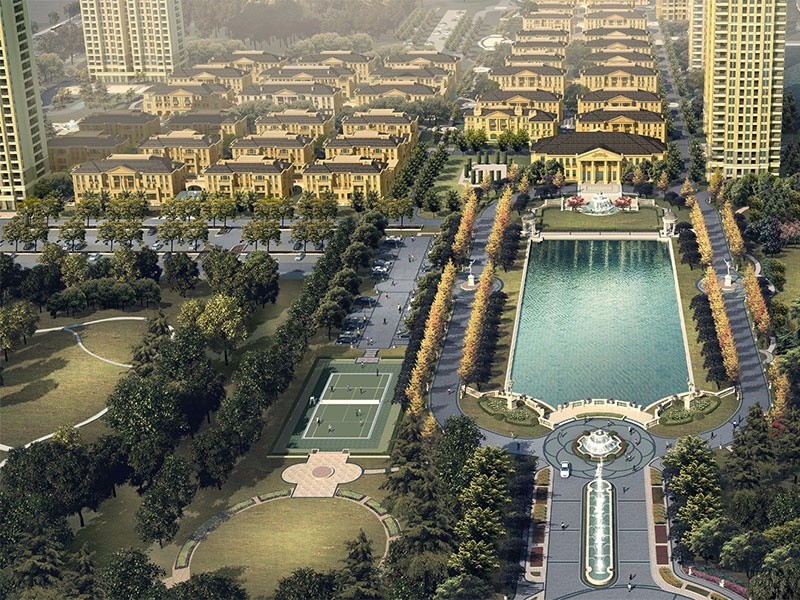 【華庭園】組團(tuán)匯集法式合院、皇家公寓、皇家園墅于一體,秉承法國皇家建筑藝術(shù)及皇家園林景觀,并將為其提供高端物業(yè)服務(wù)。目前火爆熱銷中,基本售罄。
