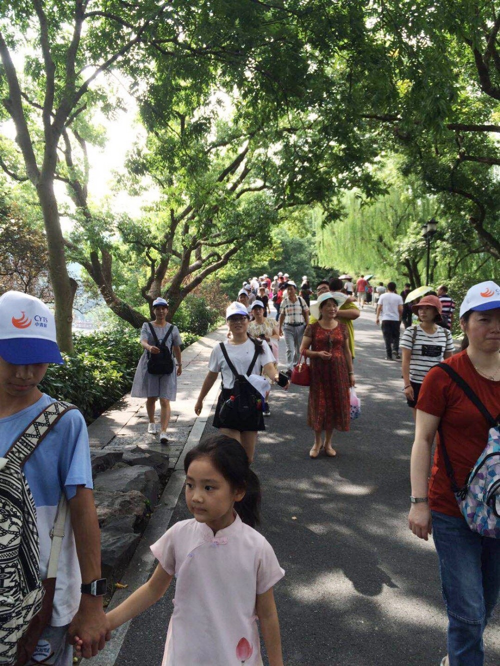 一下車(chē),大家漫步來(lái)到了西湖邊,走在蘇堤上,紛紛感慨:西湖不愧是人間天堂啊!整個(gè)一座湖就像一面大鏡子,倒映著湖邊的美景,照出了大家歡樂(lè)的心聲。湖堤兩岸長(zhǎng)滿了柳樹(shù),柳樹(shù)依舊像春天那樣充滿著蓬勃的生命力,枝條長(zhǎng)得已經(jīng)垂到了湖面,宛如一個(gè)美麗的少女正在清洗她那長(zhǎng)長(zhǎng)的黑發(fā),微風(fēng)乍起,柳枝擺動(dòng),仿佛是風(fēng)在彈奏悠揚(yáng)的豎琴,也仿佛在歡迎我們恒森一家人的到來(lái)。在這如此美的景色下,有的員工拿出手機(jī)拍照留念,有的員工結(jié)伴倚在湖邊的長(zhǎng)凳上,相互聊天拉家常。