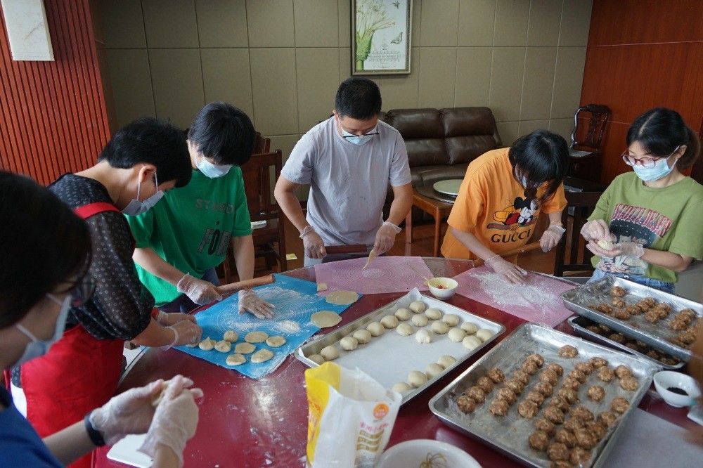 在群團組織的帶領(lǐng)下,大伙兒一起親身體驗做月餅的樂趣,現(xiàn)場熱鬧非凡,氣氛活躍喜慶。公司不乏做月餅高手,在她們點撥下,大家信手拈來,人人化身月餅師傅,揉粉、搟皮、做餡、包裹、上色、烘焙……一個個精美的月餅在手中呈現(xiàn),空氣中洋溢著滿滿的成就感。