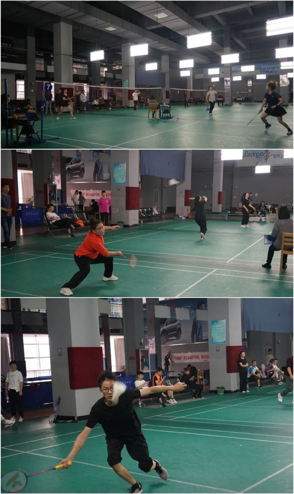 比賽場上,選手們一個個生龍活虎,雪白的乒乓球和羽毛球在球拍間來回穿梭,劃出一道道靈動而精美的曲線。選手們各施絕技,每球必爭、每分必搶,打得酣暢淋漓,觀眾大呼看球過癮。比賽懸念叢生,精彩紛呈,賽場上歡聲笑語不斷,陣陣掌聲和叫好聲將比賽推向了一個又一個高潮。