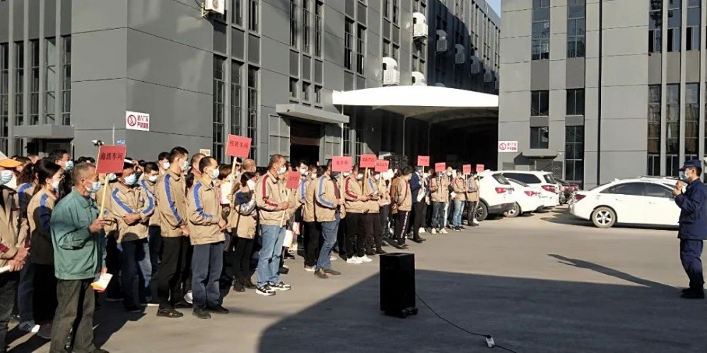 隨著警報響起,應急疏散演練正式開始,班組長在各車間門口引導員工迅速離開車間,員工用濕毛巾之類物品捂住口鼻彎腰低姿快速有序地沿防火安全疏散通道向外跑,各部門負責人將員工引導至空曠安全地帶“緊急集合點”,隨即各車間主任清點人數,并層層向上匯報。