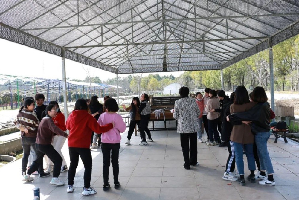 最后玩起了一種令人難忘的游戲,大家圍成一圈慢跑后,當(dāng)聽到報(bào)數(shù)人喊數(shù)字口令后,隊(duì)友們立即按該數(shù)字抱成一團(tuán)。結(jié)果很多人手忙腳亂,有的找到了伙伴,也有的不是三個(gè)人抱在了一起,就是沒有朋友的,哈哈!