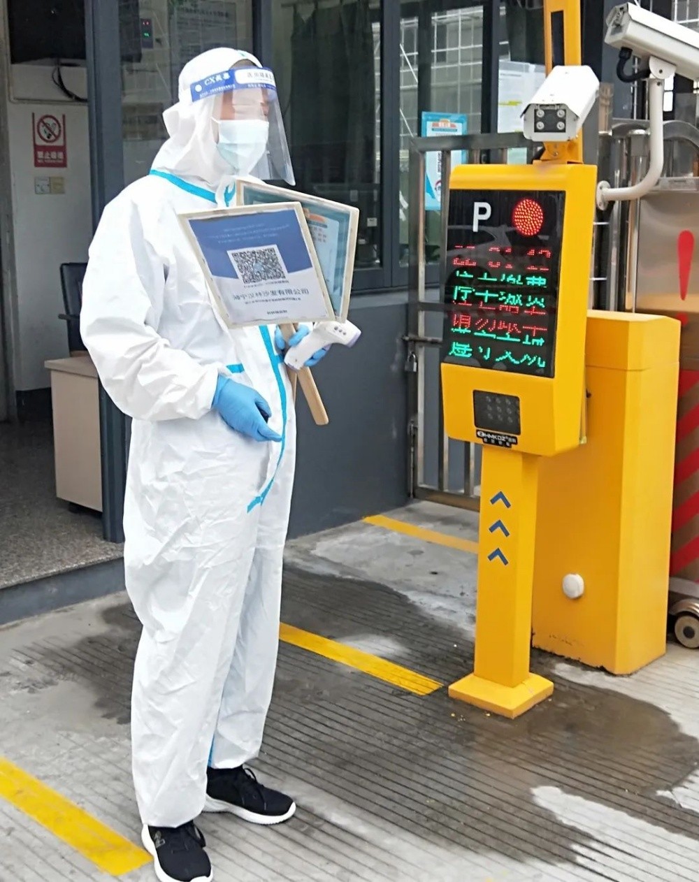 強(qiáng)化落實(shí)進(jìn)廠人員門衛(wèi)登記制度,對進(jìn)廠人員和外來車輛等,門衛(wèi)進(jìn)行身份證實(shí)名登記,查看“嘉行碼”、行程碼,要求戴口罩并測體溫登記;人員進(jìn) 出管控到位,如訪客要登記訪客證,電話通知被訪人在門衛(wèi)室接見。
