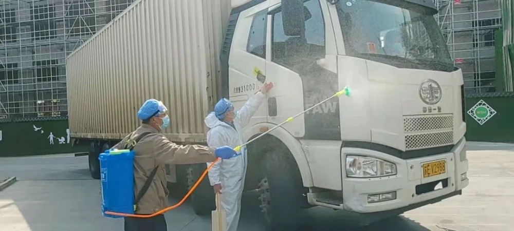 貨車司機(jī)按照政策要求嚴(yán)格執(zhí)行通行證申領(lǐng)及駕企通報(bào)備登記,進(jìn)行閉環(huán)管理,并對每一輛貨車進(jìn)行消毒入廠區(qū),對貨車司機(jī)提供免費(fèi)送餐服務(wù)。