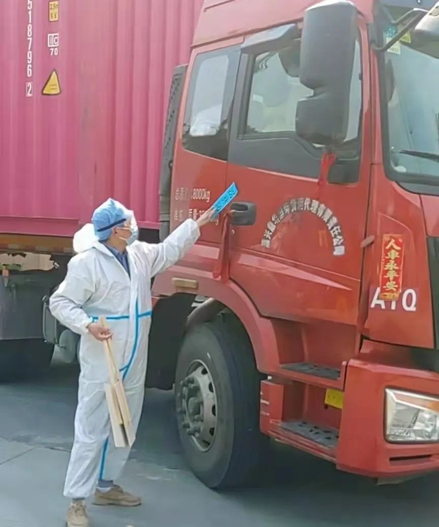 凡進(jìn)入廠區(qū)的集裝箱及來廠裝貨車輛,都要求掃“嘉行碼”及行程碼查看(嘉興市外來返斜橋的進(jìn)行登記),并測體溫登記,駕駛證、車牌號(hào)碼、身份證號(hào)碼、進(jìn)廠時(shí)間、離廠時(shí)間等都要求填寫完整記錄。(由于貨車封閉管理所有駕駛員信息由單證部反饋管理部,由保安核對統(tǒng)一填寫登記,對嘉興市市外車輛進(jìn)行車門封條張貼)