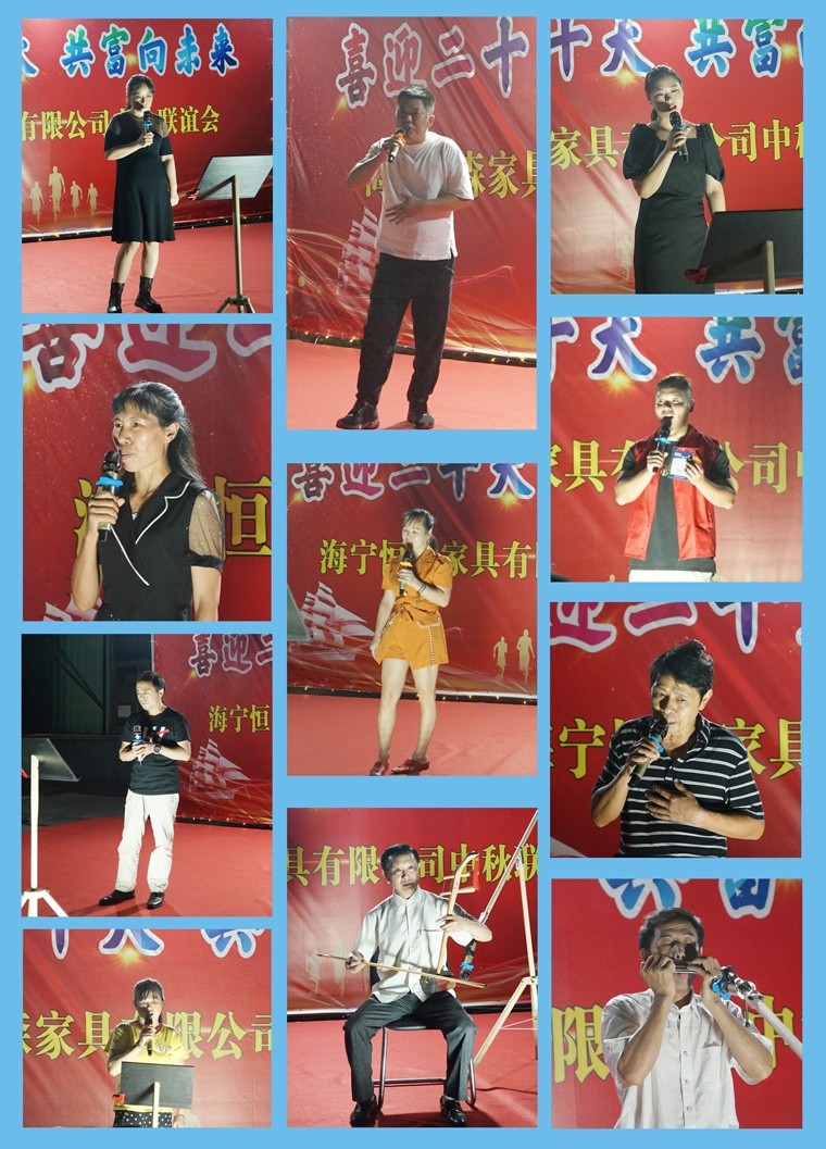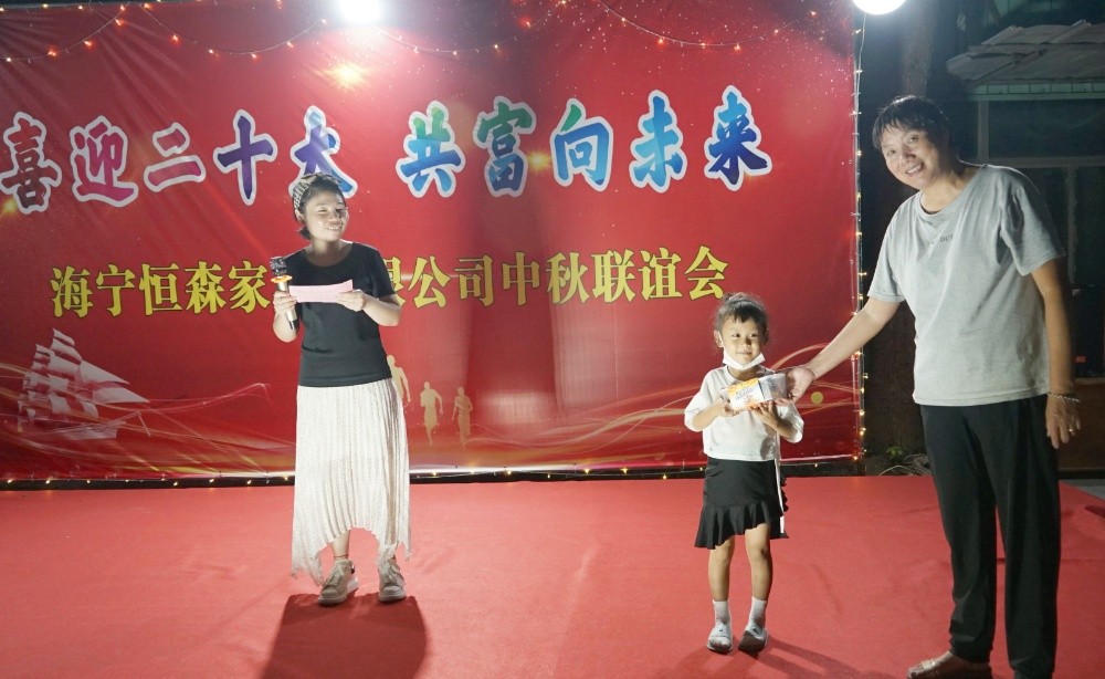 9月7日晚,一場別開生面的“喜迎二十大·共富向未來——海寧恒森家具有限公司中秋聯誼會”在路仲廠區的場地上完美呈現。沒有璀璨的燈光,沒有高檔的音響,亦沒有華麗的服裝和專業的演出技能,公司近200名員工簡樸地歡聚在一起,用歌舞表演等形式迎接壬寅中秋和二十大的到來;用圓桌圓盤等寓意中秋團圓,十全十美。