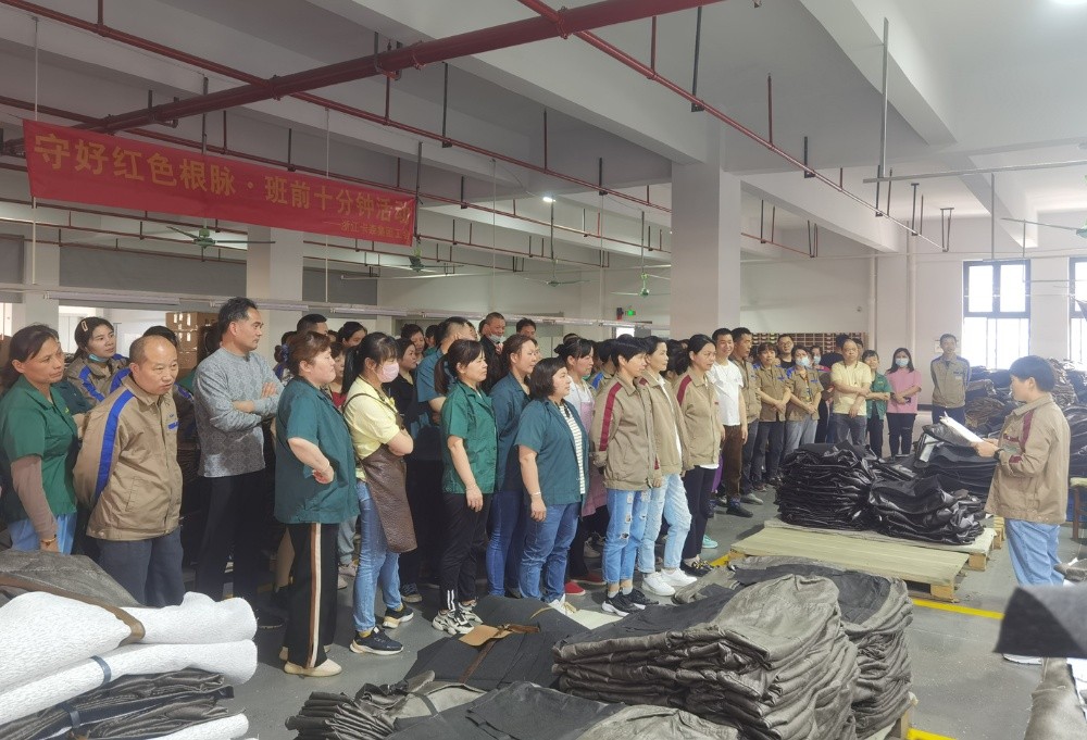 4月8日剛上班,卡雷諾公司縫紉車(chē)間組織開(kāi)展班前會(huì),把黨的二十大精神、全國(guó)兩會(huì)精神等內(nèi)容簡(jiǎn)要宣傳貫徹到車(chē)間全體員工中,讓基層員工了解國(guó)家時(shí)政,把握發(fā)展大局;同時(shí)圍繞近期工作,對(duì)員工開(kāi)展安全生產(chǎn)、產(chǎn)品質(zhì)量、反詐宣傳等;鼓勵(lì)員工專(zhuān)研技能提升,做新時(shí)代工匠。