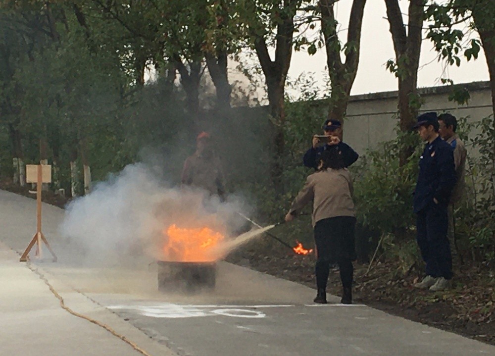12點15分,演練正式開始,公司安全員郁虎華強調了演練的幾個要點:保持良好的安全習慣,根除火災隱患;面對火災一定要沉著、冷靜,采取合適的火災措施;滅火中應注意的地方。隨后,員工們親自體驗了現場滅火,分男子組和女子組,兩兩配合,起跑、傳遞、拉栓、滅火,面對火桶里熊熊燃燒的火苗,大家沉著冷靜地按照方法和要領將火迅速撲滅,達到了本次演練的標準。