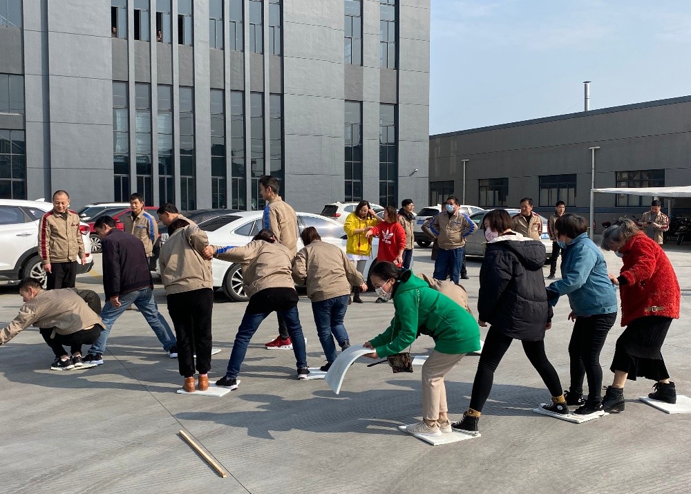 本次活動(dòng)共有63名留守外地員工參加。活動(dòng)開始前,由裁判員介紹比賽規(guī)則為每4人一組進(jìn)行趣味活動(dòng),每人四塊海綿,通過腳踩磚頭,四塊磚頭輪流交換的方法穿過賽道,腳不能著地,到達(dá)終點(diǎn)線。準(zhǔn)備就序后,裁判一聲令下,比賽正式開始,賽事緊張而激烈,員工們個(gè)個(gè)鉚足了勁,使出渾身解數(shù)與之較量。一旁觀戰(zhàn)的員工為之吶喊助威,現(xiàn)場歡笑聲、加油聲此起彼伏,點(diǎn)燃著團(tuán)隊(duì)們的激情。參賽員工有的采用“青蛙式”的蹦跳、有的采用“螃蟹式”的“橫行法”、有的采用“凌波微步式”。外來員工們雙手靈活地挪動(dòng)磚頭,絲毫不見疲憊緊張的樣子。本次活動(dòng)讓員工們體驗(yàn)了運(yùn)動(dòng)的快樂、競爭的樂趣,讓緊張的工作多了一份趣味和童真,同時(shí)也加強(qiáng)了員工的團(tuán)隊(duì)協(xié)作意識,營造了輕松愉悅的氛圍,