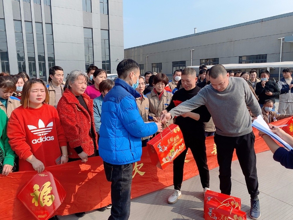 最后,公司領(lǐng)導(dǎo)為留守外地員工每人發(fā)放一份大禮包和一個(gè)紅包,大家拍集體照留念,讓大家感受到漢林大家庭的溫暖、過年的溫馨。另外,斜橋鎮(zhèn)總工會(huì)聯(lián)合嘉興移動(dòng)推出“陪你在‘嘉’過年”活動(dòng)為企業(yè)外地留宿員工大禮品派送活動(dòng),以及春節(jié)期間將實(shí)行海寧市內(nèi)公交針對省外來員工免費(fèi)乘車措施,也讓員工們真實(shí)感受到政府對他們的關(guān)心和關(guān)愛。