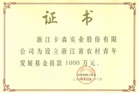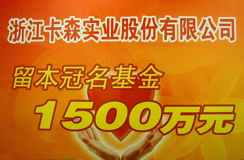 ▲ 2007年,海寧市創建慈善基金,集團設立卡森留本冠名基金1500萬元,至今累計捐贈545萬元,用于助困、助學、助教、助殘;